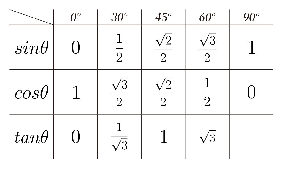 다음과 같은 삼각함수를 가진다.