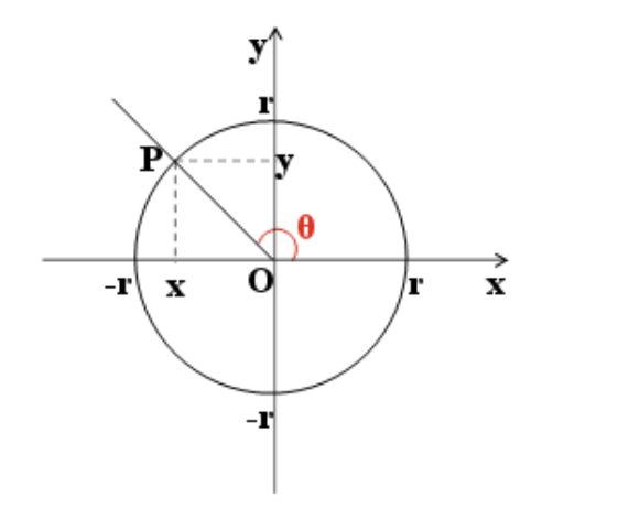 xy좌표평면에 반지름의 길이가 r인 원을 그리고 원 위의 임의의 점을 P라고 하면